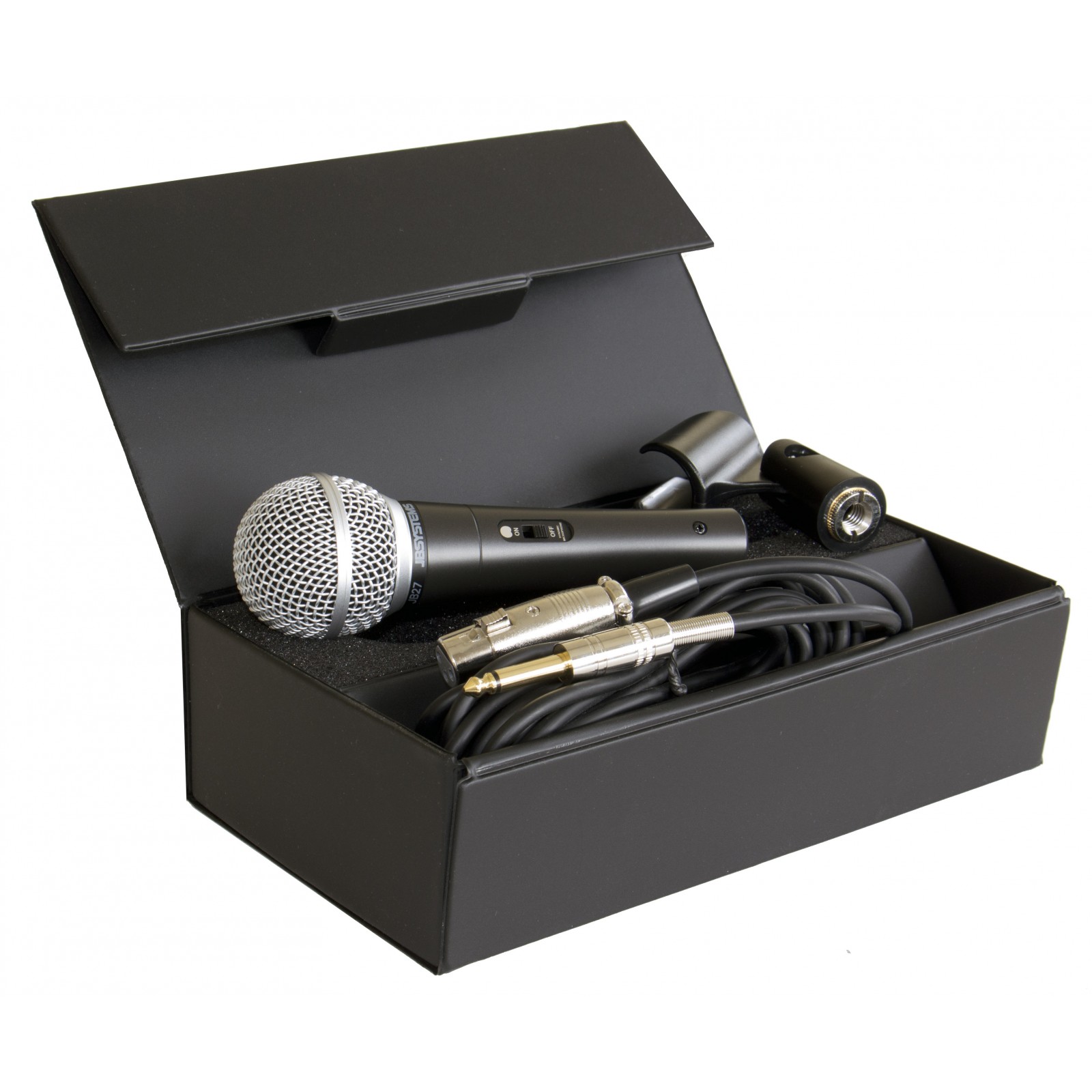 Etui, pince micro et câble 6m avec raccordement XLR vers une fiche Jack mono