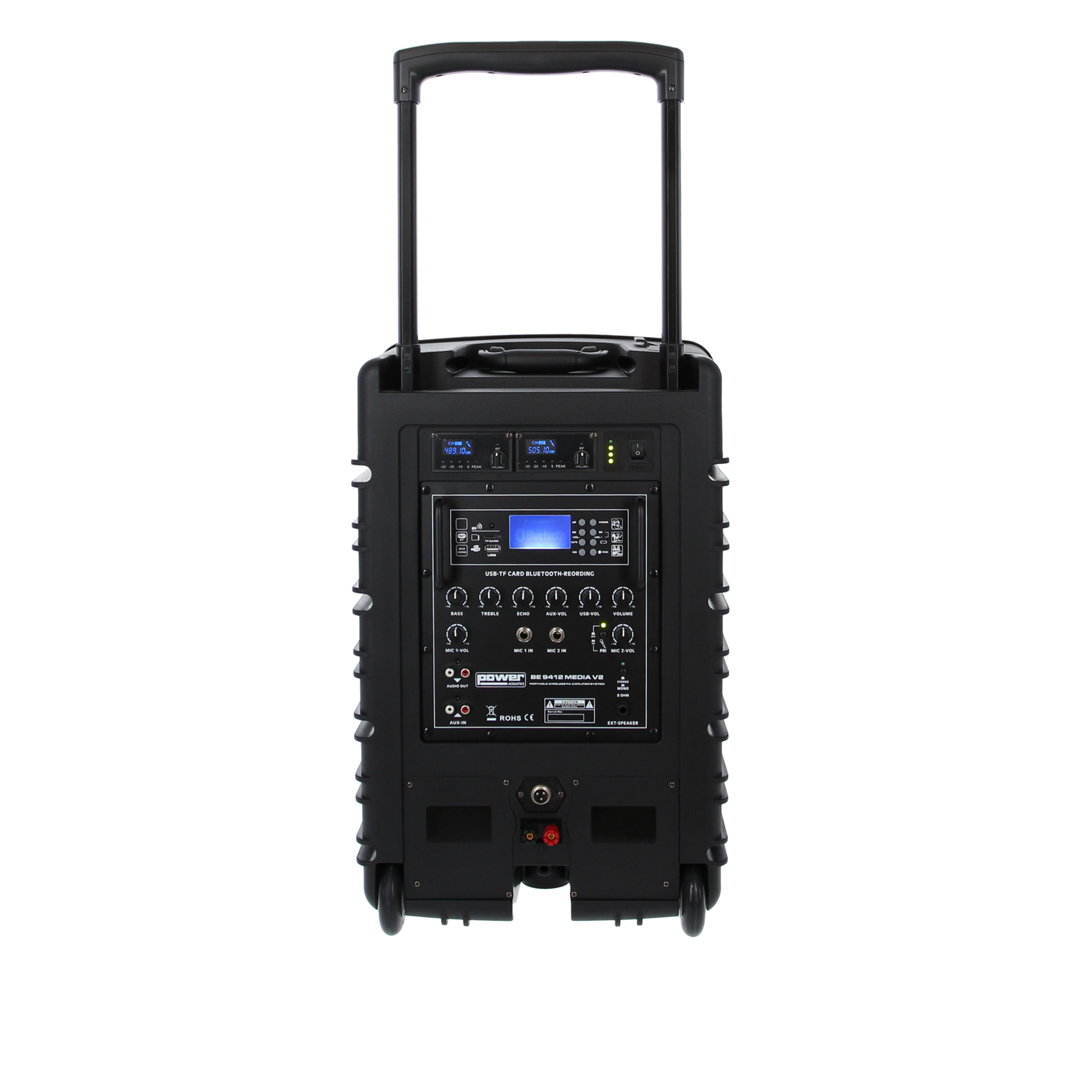 Evolution remarquable de la BE 9412 V2, bien connue dans le domaine des systèmes portatifs avec batteries. La BE 9412 MEDIA V2 reprend toutes les qualités de son ainé, avec sa finition ABS et son nouveau design professionnel, mais sans le lecteur CD. Un lecteur multimédia ultra complet vous permettra de répondre à toutes les attentes actuelles. Compacte et puissante, elle sera parfaite pour sonoriser tout type de conférences, discours ou présentations diverses.