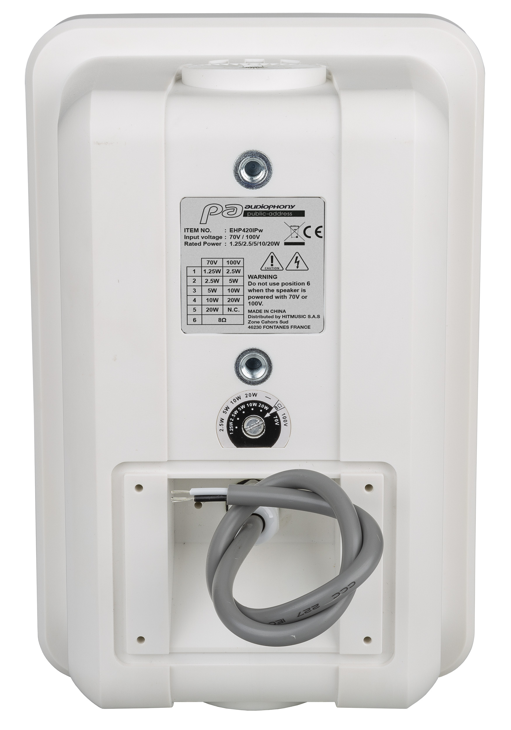 • Sélecteur de puissance : 20W 8? // 2,5 / 5 / 10 / 20 W 100V