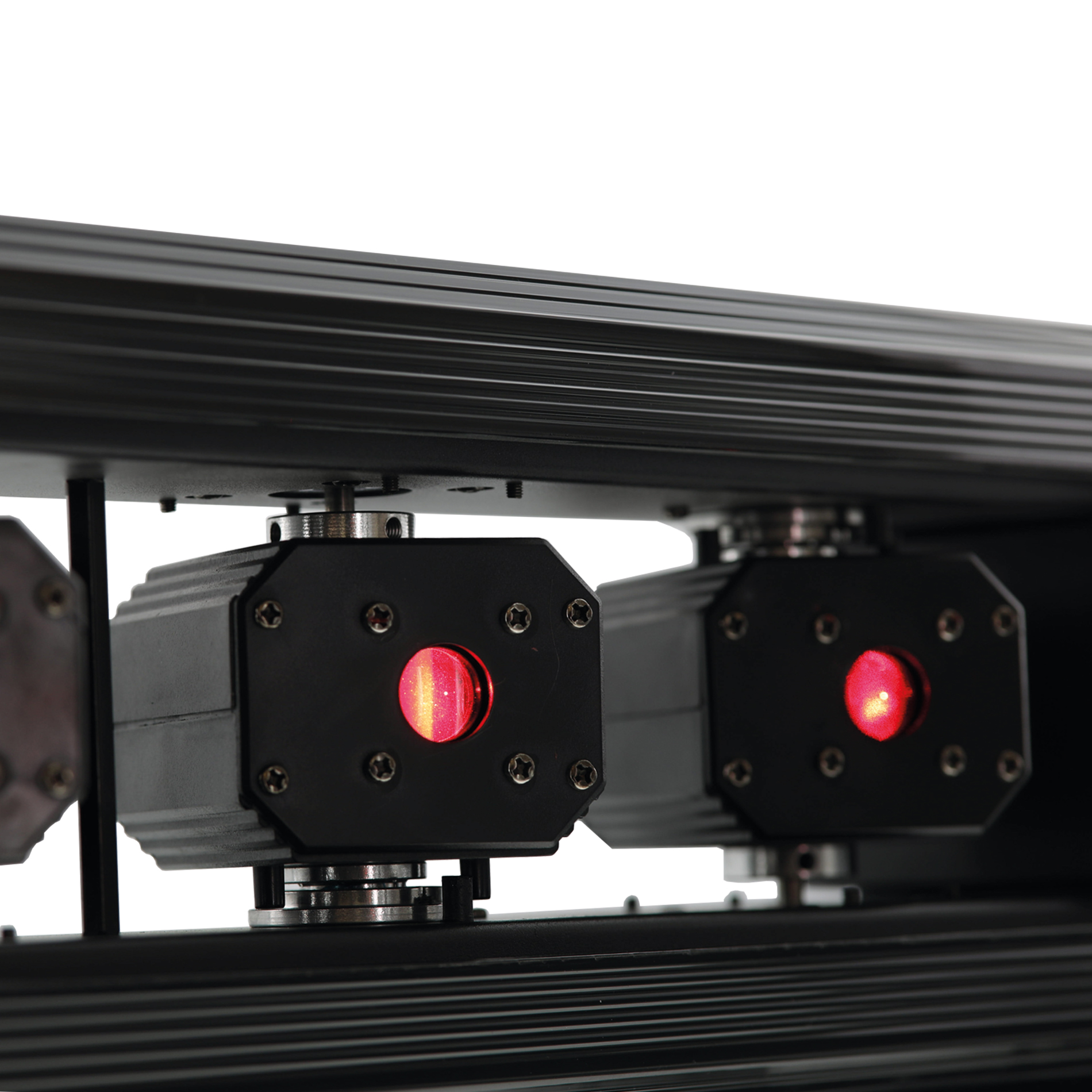 La CRAZY LASER 500 RGB est une barre motorisée équipée de 6 faisceaux lasers RGB motorisés de 500mW chacun. Les mouvements se font sur l’axe de la barre d’une part mais également sur l’axe de chacun des projecteurs laser qui sont tous indépendants les uns des autres. Les différentes rotations ainsi que les chassés-croisés de faisceaux lasers produisent de magnifiques effets d’une qualité exceptionnelle grâce à ses combinaisons simultanées et/ou séparé des faisceaux laser. Pilotable en DMX, en Automatique ou en mode musical cette barre laser intègre différents types de programmes internes fluides et précis.