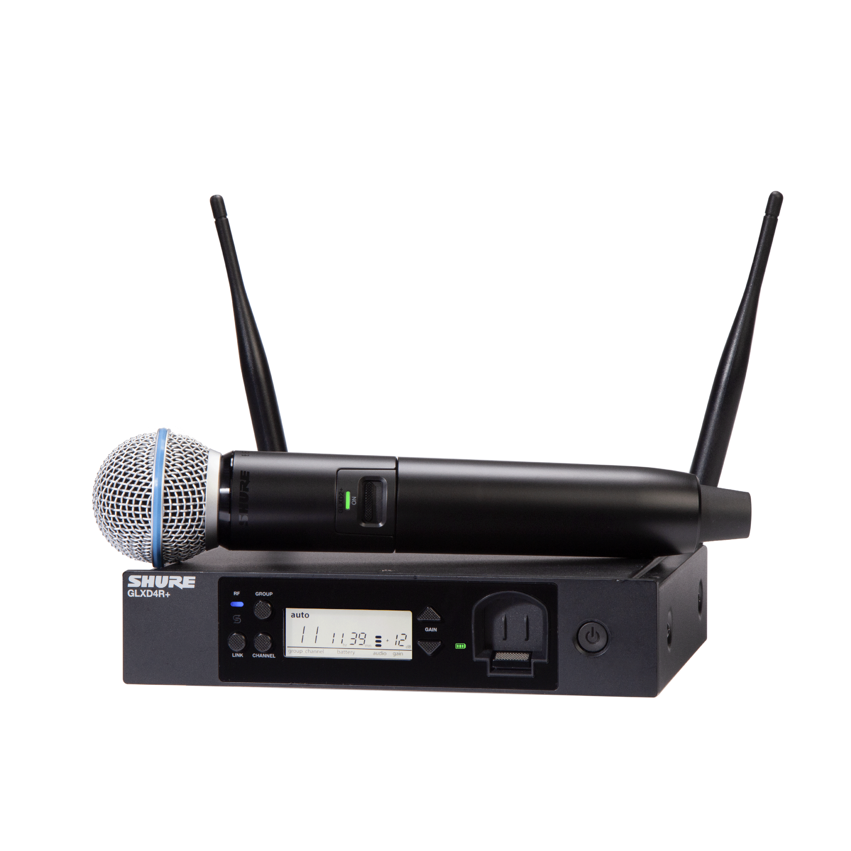 Le GLX-D+ est disponible avec plusieurs options de micro légendaires (y compris le SM58) : récepteurs simples à poser, simples rackables ou au format pédale de guitare.