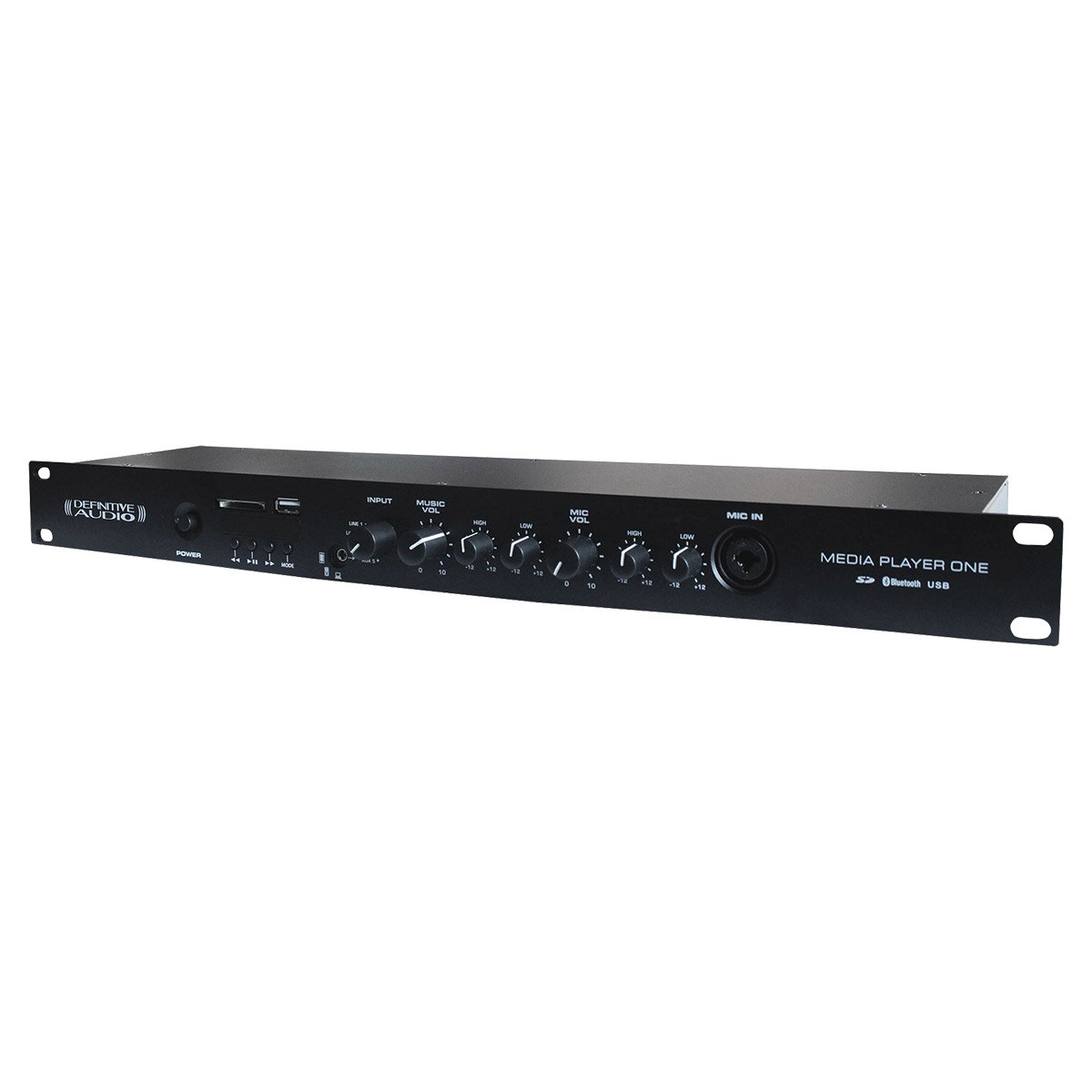 Le MEDIA PLAYER ONE de Definitive Audio est un lecteur multimédia MP3/Bluetooth idéal pour une installation simple et rapide dans des lieux comme les centres de fitness, restaurants, magasins ou centres commerciaux. Il permet une lecture numérique des cartes SD, des clés USB ainsi qu’une réception Bluetooth.