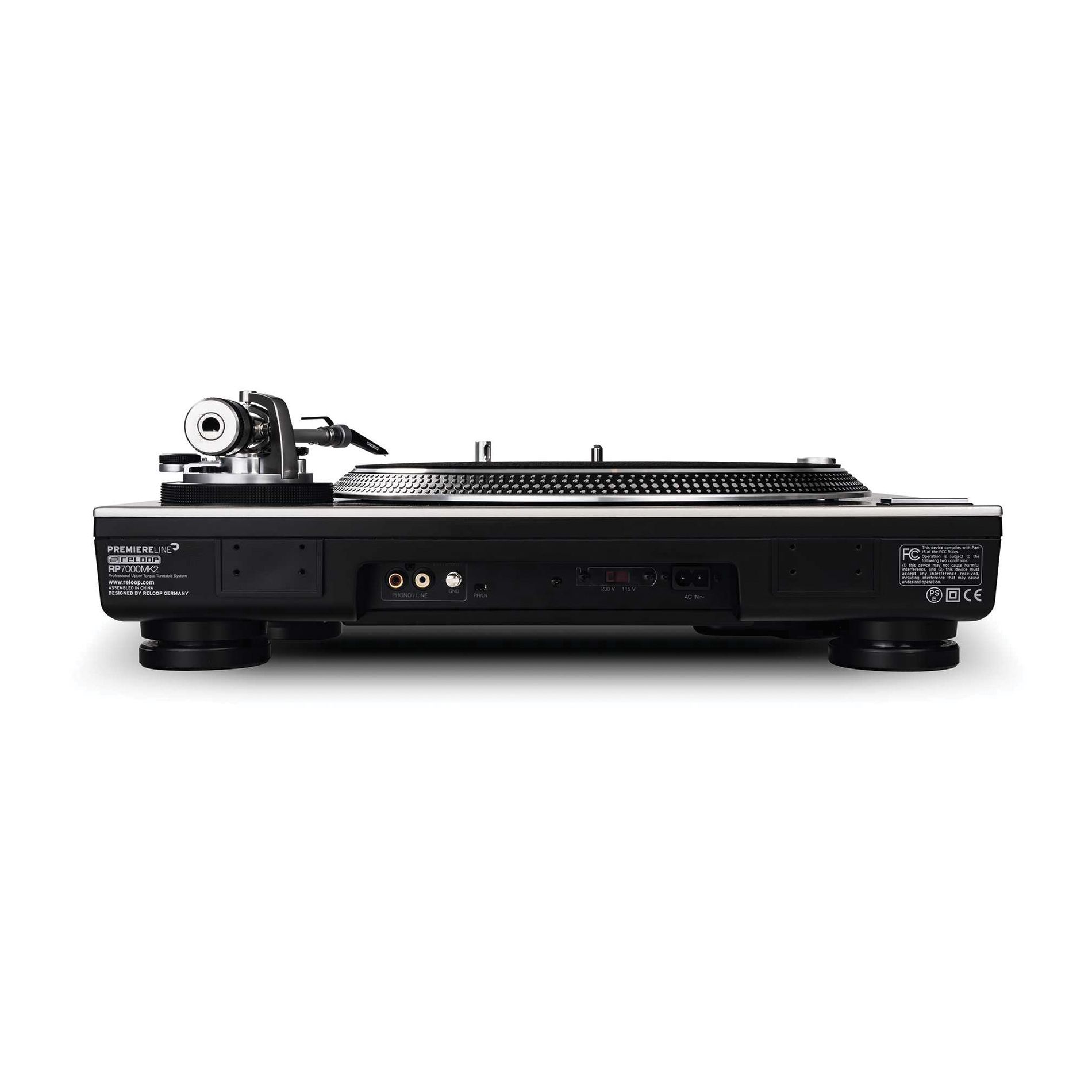 La nouvelle platine vinyle RP 7000 MK2 SILVER de Reloop est dotée d’un châssis résistant grâce à sa construction en métal et aux matériaux synthétiques. Son plateau anti-vibrations et résistant aux rayures est revêtu d’une jolie finition noire et métal. La puissance du moteur à quartz et le couple de démarrage réglable permettent de régler précisément la vitesse de rotation du plateau de 0,2 à 6 secondes, ce qui en fait une platine vinyle extrêmement fluide. Le bras de lecture en S dispose de l’anti-patinage ainsi qu’une connexion universelle pour les têtes de lecture classiques. La RP 7000 MK2 SILVER est également équipée du système de lecture avant/arrière et de deux boutons marche/arrêt pour faciliter l’utilisation en configuration verticale. Elle dispose également de boutons permettant d’alterner les trois modes de vitesses (33 1/3, 45 et 78 tr/min). Un éclairage à Led mobile et interchangeable permet de trouver facilement la position de la tête de lecture dans un environnement sombre. La RP 7000 MK2 SILVER dispose d’un préampli phono intégré et commutable permettant de l’utiliser avec un signal de sortie Phono ou ligne. La connexion RCA est facilitée par l’usage de câbles détachables. Grâce aux améliorations techniques apportées, cette nouvelle RP 7000 MK2 SILVER répond de manière encore plus significative aux exigences élevées des Clubs et des DJ professionnels.