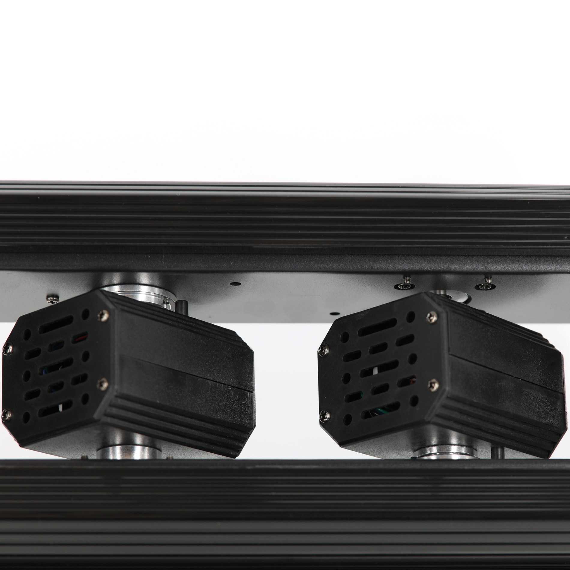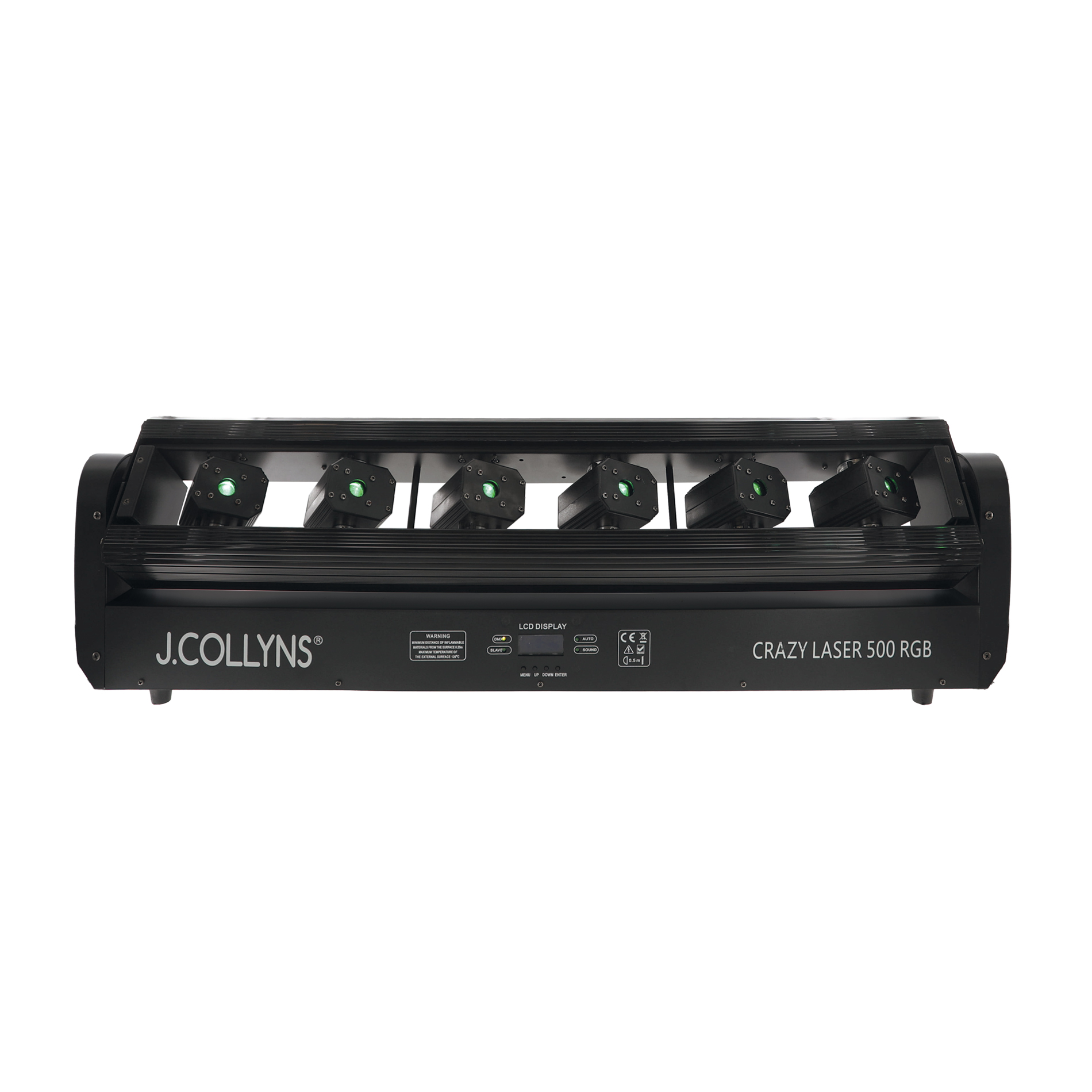 La CRAZY LASER 500 RGB est une barre motorisée équipée de 6 faisceaux lasers RGB motorisés de 500mW chacun. Les mouvements se font sur l’axe de la barre d’une part mais également sur l’axe de chacun des projecteurs laser qui sont tous indépendants les uns des autres. Les différentes rotations ainsi que les chassés-croisés de faisceaux lasers produisent de magnifiques effets d’une qualité exceptionnelle grâce à ses combinaisons simultanées et/ou séparé des faisceaux laser. Pilotable en DMX, en Automatique ou en mode musical cette barre laser intègre différents types de programmes internes fluides et précis.