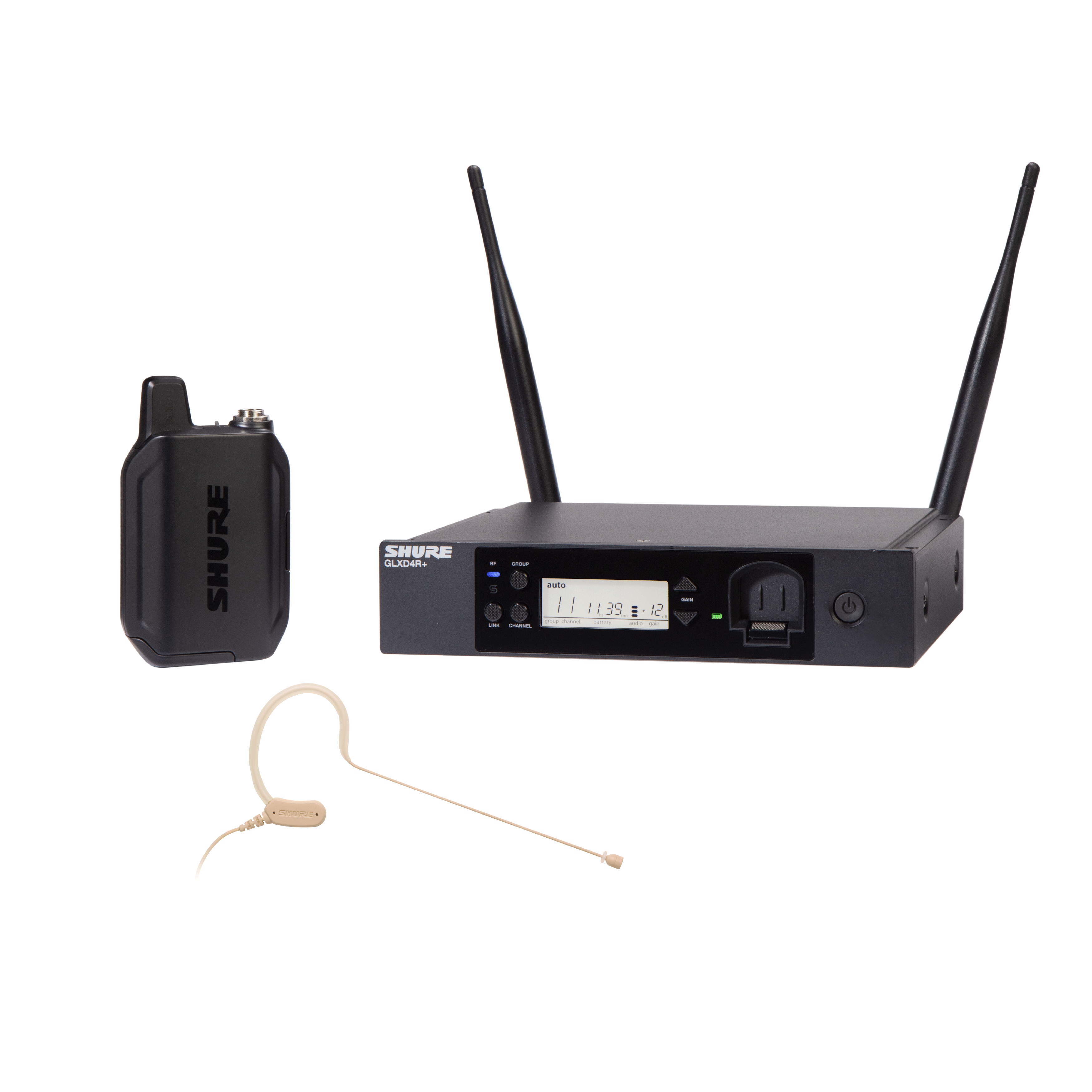 Récepteur double-bande GLX-D+ rackable avec émetteur de poche et micro tour d’oreille MX153.