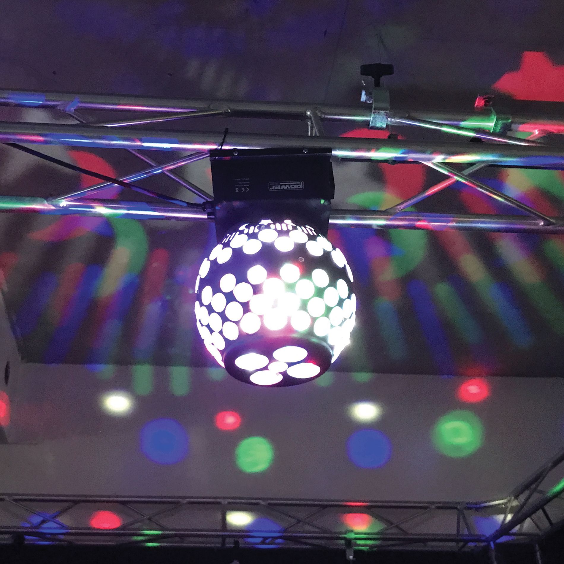 La MAGIC BALL est une sphère à LEDs rotative fonctionnant au son de la musique et produisant une multitude de faisceaux multicolores très nets. Elle comprend 4 LEDs QUAD 4-en-1 RGBW de 3W chacune pouvant reproduire une très large gamme de couleurs permettant de fasciner votre public avec un effet original. La Magic Ball est également dotée de 4 spots avec gobos étoile et lune pour plus de « fun » lors des soirées.