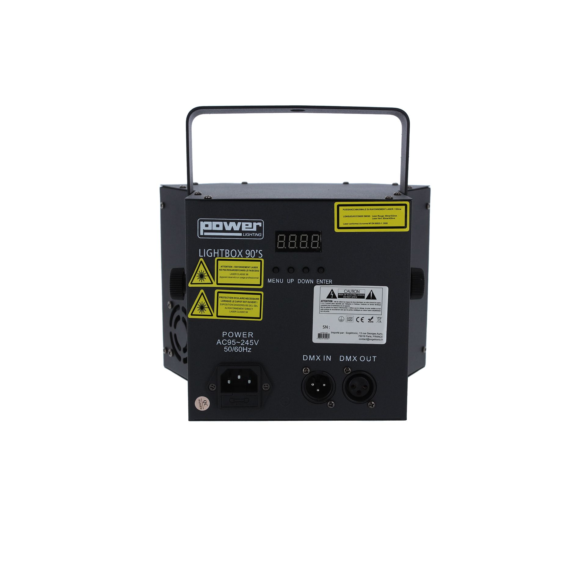 - Effet Laser : 1 x Rouge 80mW + 1 x Vert 50mW (multipoints + motifs)
