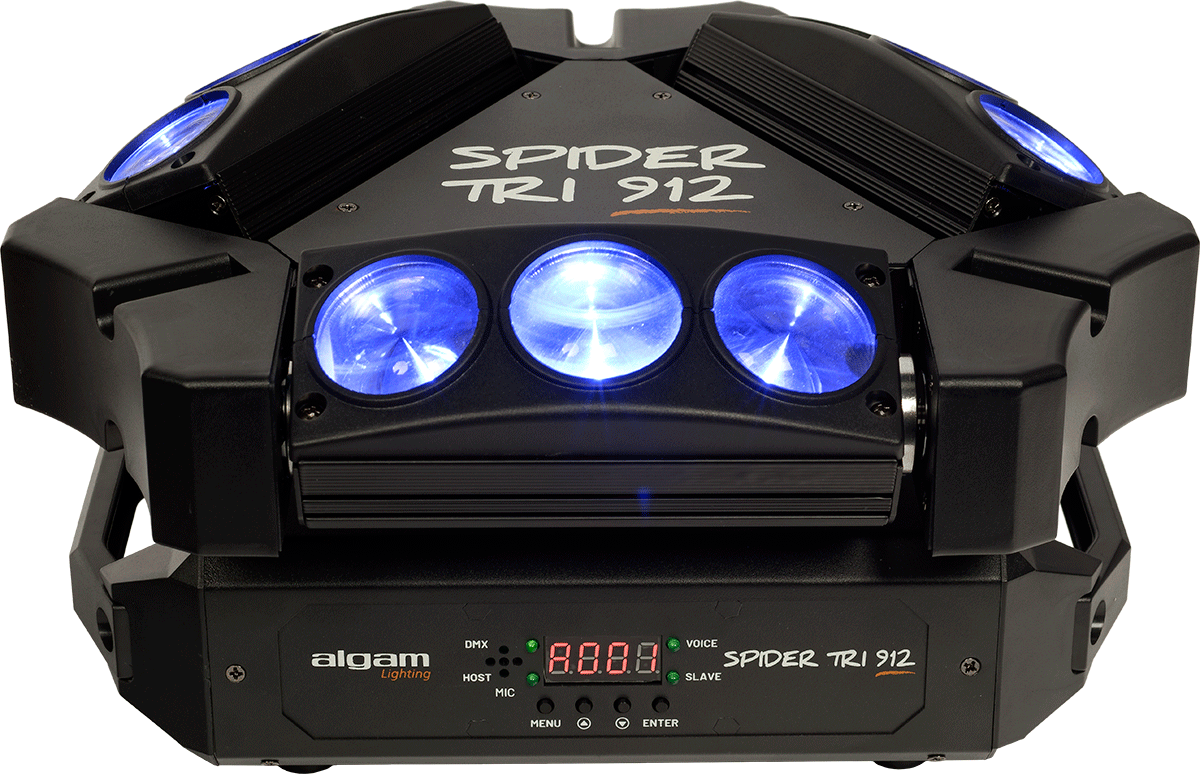 Pensé pour être utilisé par des novices comme des professionnels, le Spider Tri 912 présente de nombreux modes de fonctionnement différents pour répondre à toutes vos attentes. Pour mettre l'ambiance en quelques instants sans réglages fastidieux, utilisez tout simplement le mode Automatique ou le mode Détection de Musique, et le Spider Tri 912 s'occupe de mettre le feu au dancefloor ! Pour les professionnels désirant créer un show lumière plus poussé, le Spider Tri 912 dispose d'un mode DMX pouvant fonctionner sur 16, 24 ou 48 canaux pour régler chaque LED indépendamment. Les modalités d'installation flexibles du Spider Tri 912 vous permettent de l'installer au sol, ou de le suspendre la tête en bas pour un effet de balayage impressionnant dans toute la pièce.