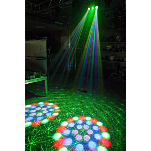 Effet 3-en-1 avec moonflower, laser et stroboscope