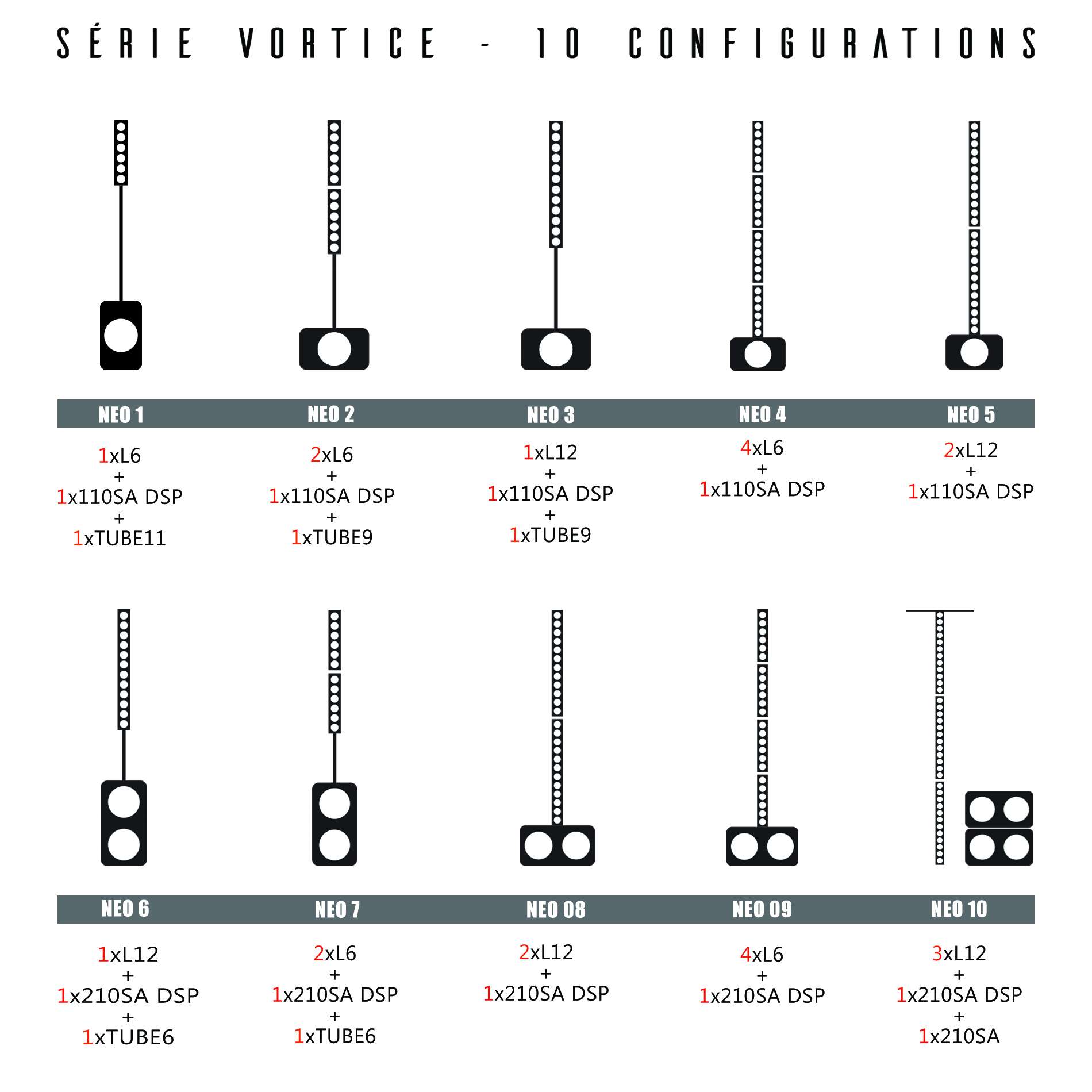 Incontournable de nos jours grâce à leurs qualités acoustiques et simplicité d’utilisation, les systèmes Colonne Line Array sont devenus des acteurs importants dans le milieu de la sonorisation. Definitive Audio est fière de vous présenter la série VORTICE composée de deux colonnes et quatre caissons de basses pour faire face à toutes les contraintes de sonorisation. Le système vous propose en effet, de multiples combinaisons afin de satisfaire au mieux les exigences des lieux à sonoriser.