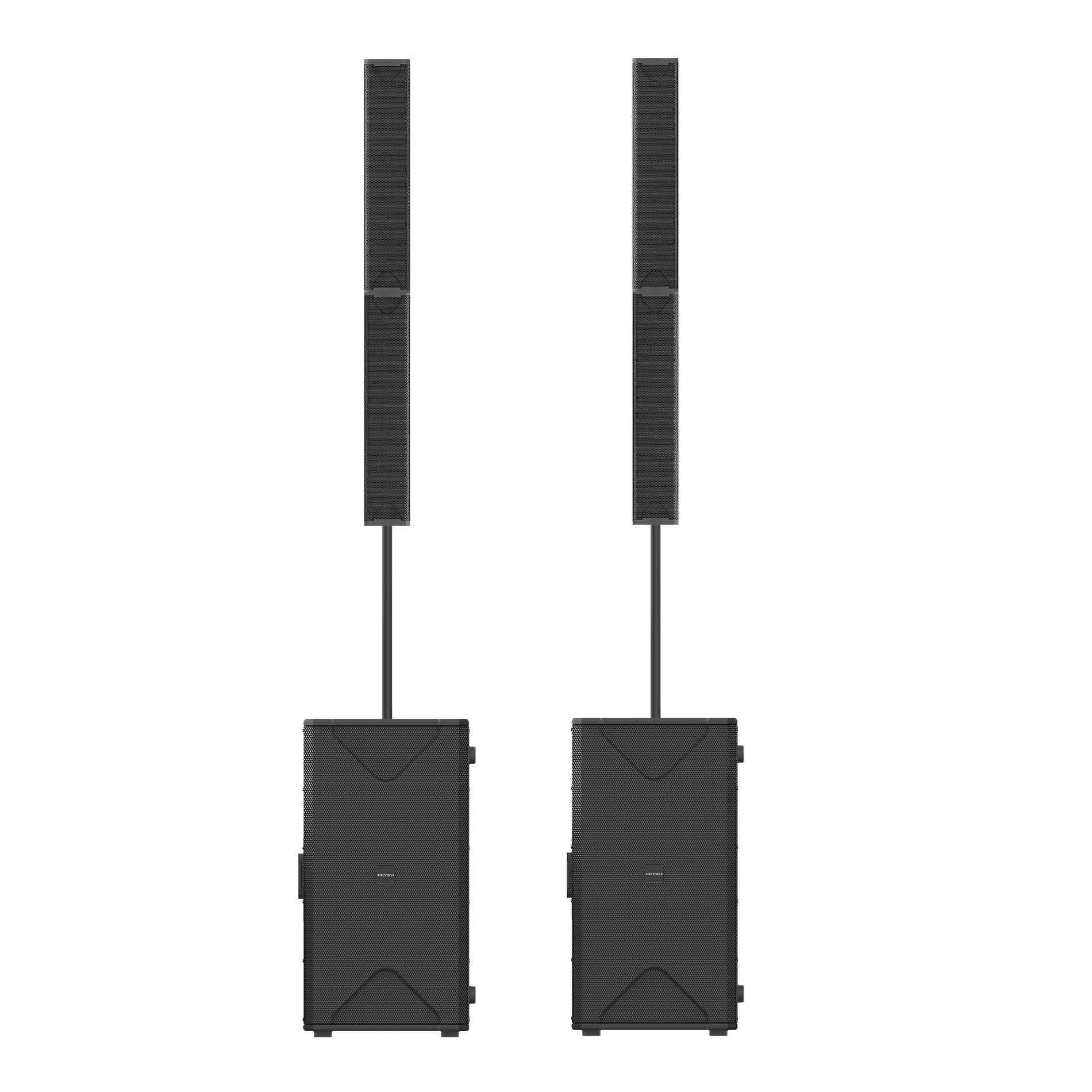 Système de diffusion de type colonne 1400W RMS, composé de quatres colonnes VORTICE L6, de deux caissons de basse VORTICE 210SA DSP et de deux VORTICE TUBE 6.